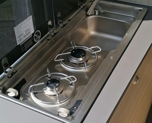 Auf gutes und leckeres Essen sollte im Wohnmobilurlaub nicht verzichtet werden. Das Reisemobil Fiat Ducato Sun Living bietet hierzu beste Voraussetzungen. Die optimierte Arbeitsplatte, viele Stauräume und Schubladen, sowie das Kochfeld und der große Kühlschrank gestalten Kochen während des Campingurlaubs einfach und bequem. Das Bad ist funktional eingerichtet und verfügt über eine Dusche, Toilette und Waschbecken. Der modern gestaltete Innenraum mit LED Beleuchtung sorgt für ein angenehmes Ambiente in dem man sich rundum wohlfühlt.