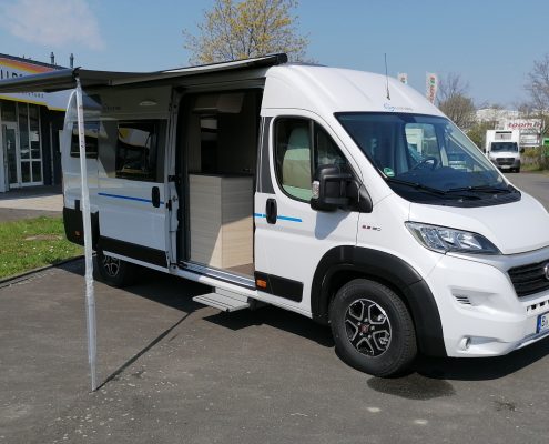 Die Standheizung und der beheizte Abwassertank hält das Wohnmobil auch bei Minusgraden betriebsbereit, sodass auch winterliche Wohnmobiltouren mit dem Fiat Ducato Sun Living kein Problem sind. Im Sommer entspannt es sich am besten unter der Markise, die in kürzester Zeit auf- bzw. abgebaut werden kann.